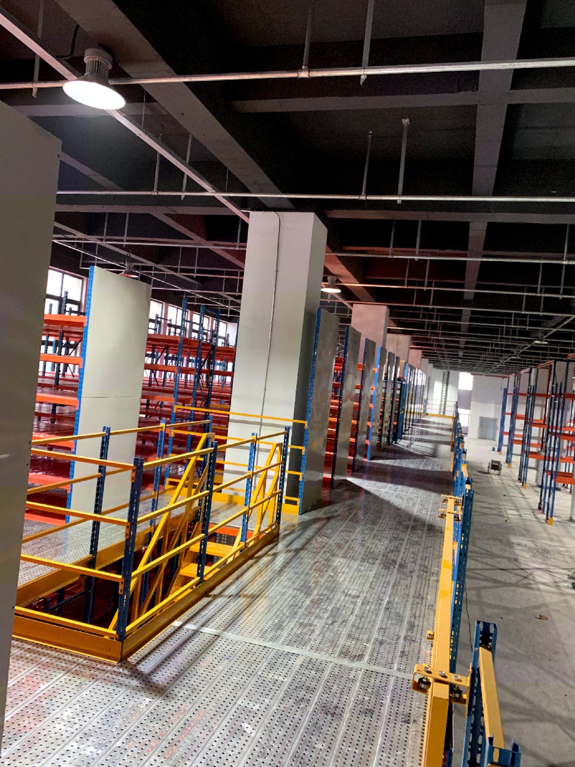一、小型的產(chǎn)品可以使用閣樓平臺貨架;二樓網(wǎng)格地面,主要是為了達(dá)到消防的要求,方便采光;升降機(jī)的設(shè)計(jì)方便了貨物上下樓的搬運(yùn),節(jié)省了人力。
