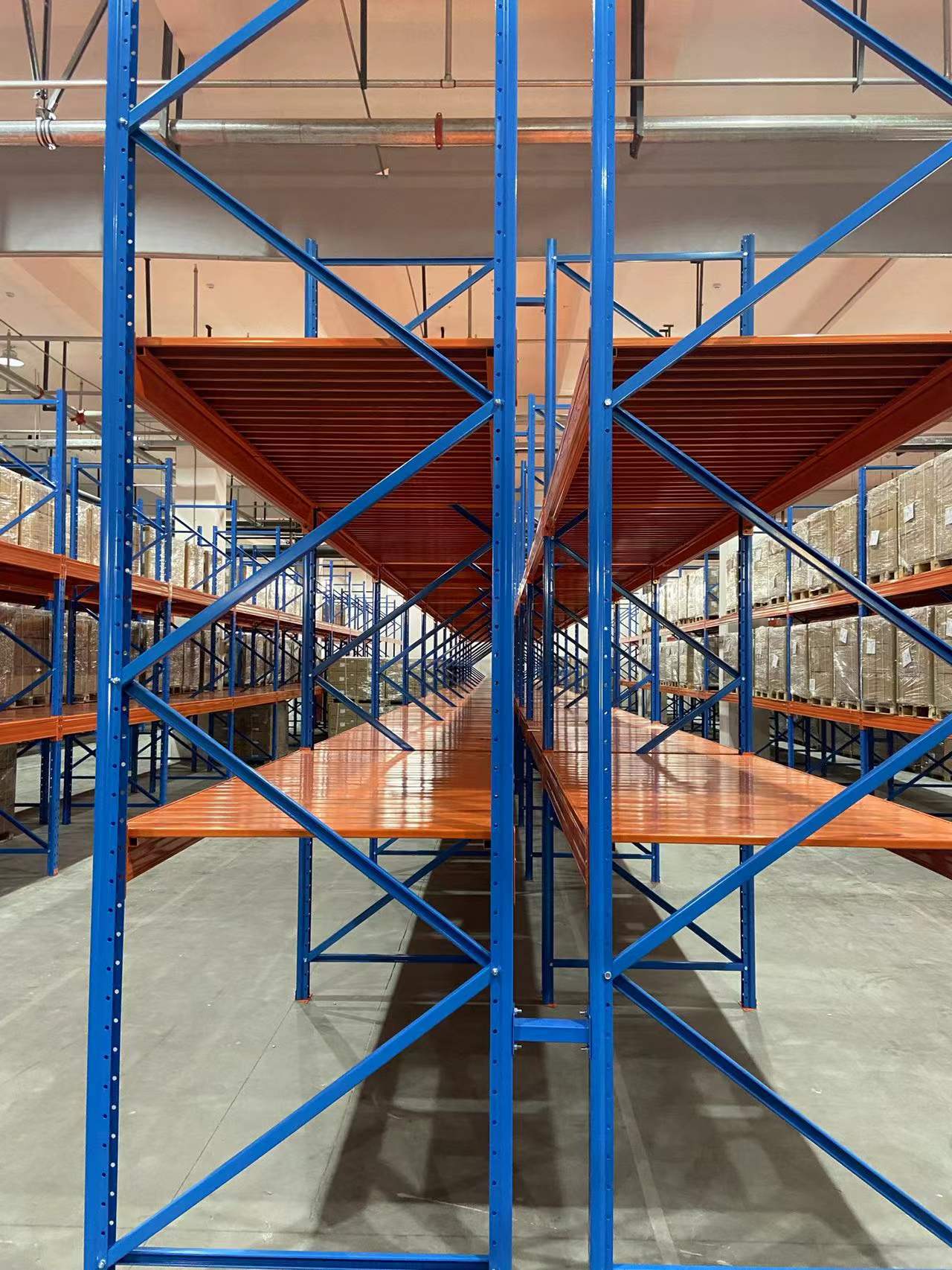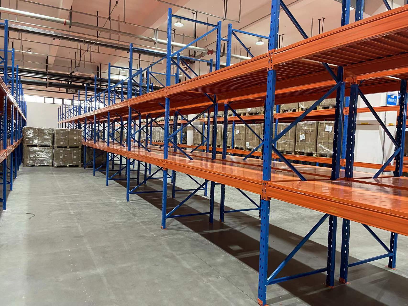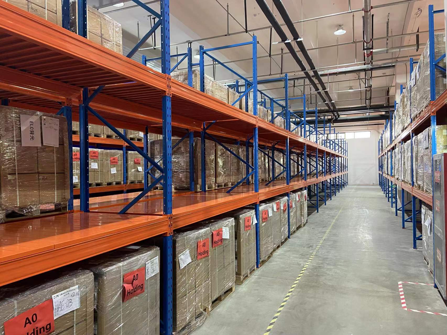 由于倉庫高度只有4.5米,貨架不能做太高,我們決定配合重型橫梁式貨架來使用,兩層橫梁三層擺放,這樣滿足了對存儲量的需求