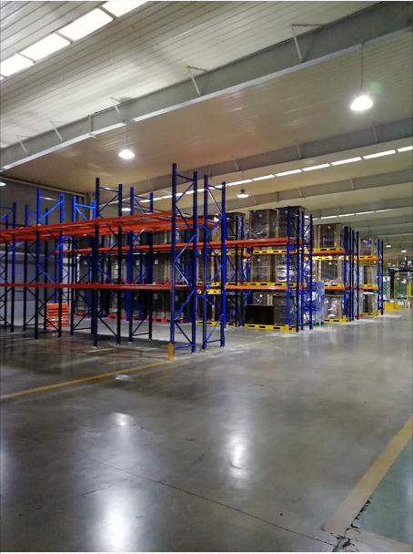 重型貨架采用90*68*2.0的立柱,120*50*1.5的橫梁,4.5米高,2層橫梁3層擺放,共計(jì)1704個貨位每層承載2噸,每個托盤承載1噸。簽訂合同18天后發(fā)貨,包裝用塑鋼帶打緊后用纏繞膜保護(hù),防止貨物傾斜或碰傷,兩天后到達(dá)客戶現(xiàn)場,安裝共計(jì)6天完成,安裝完畢對方驗(yàn)收。